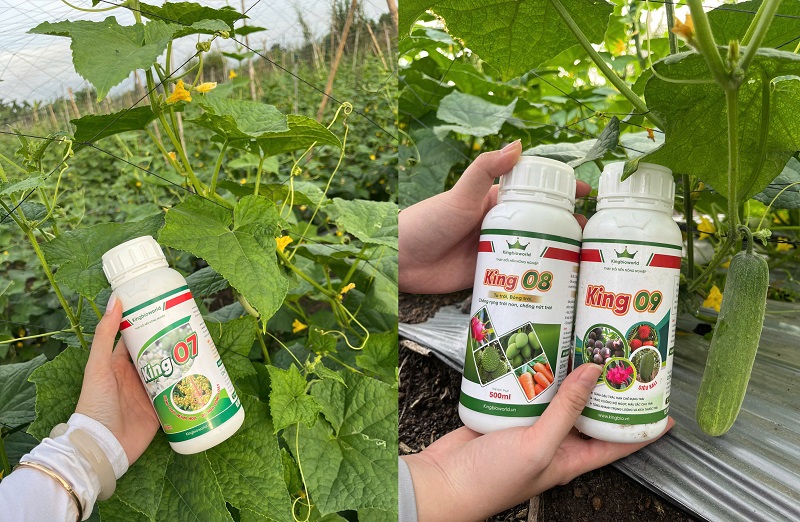 Bên cạnh đó, để hỗ trợ quá trình ra hoa, đậu quả của dưa leo diễn ra ổn định và tự nhiên hơn, bà con có thể kết hợp sử dụng các sản phẩm sinh học của Kingbioworld. Bộ giải pháp sinh học giúp cây khỏe từ rễ, cân đối dinh dưỡng, hạn chế tình trạng xanh lá, dư đạm khiến hoa dễ rụng. Khi bộ rễ phát triển tốt, cây nuôi hoa khỏe, hoa cái bền hơn, tăng khả năng đậu trái sau thụ phấn.